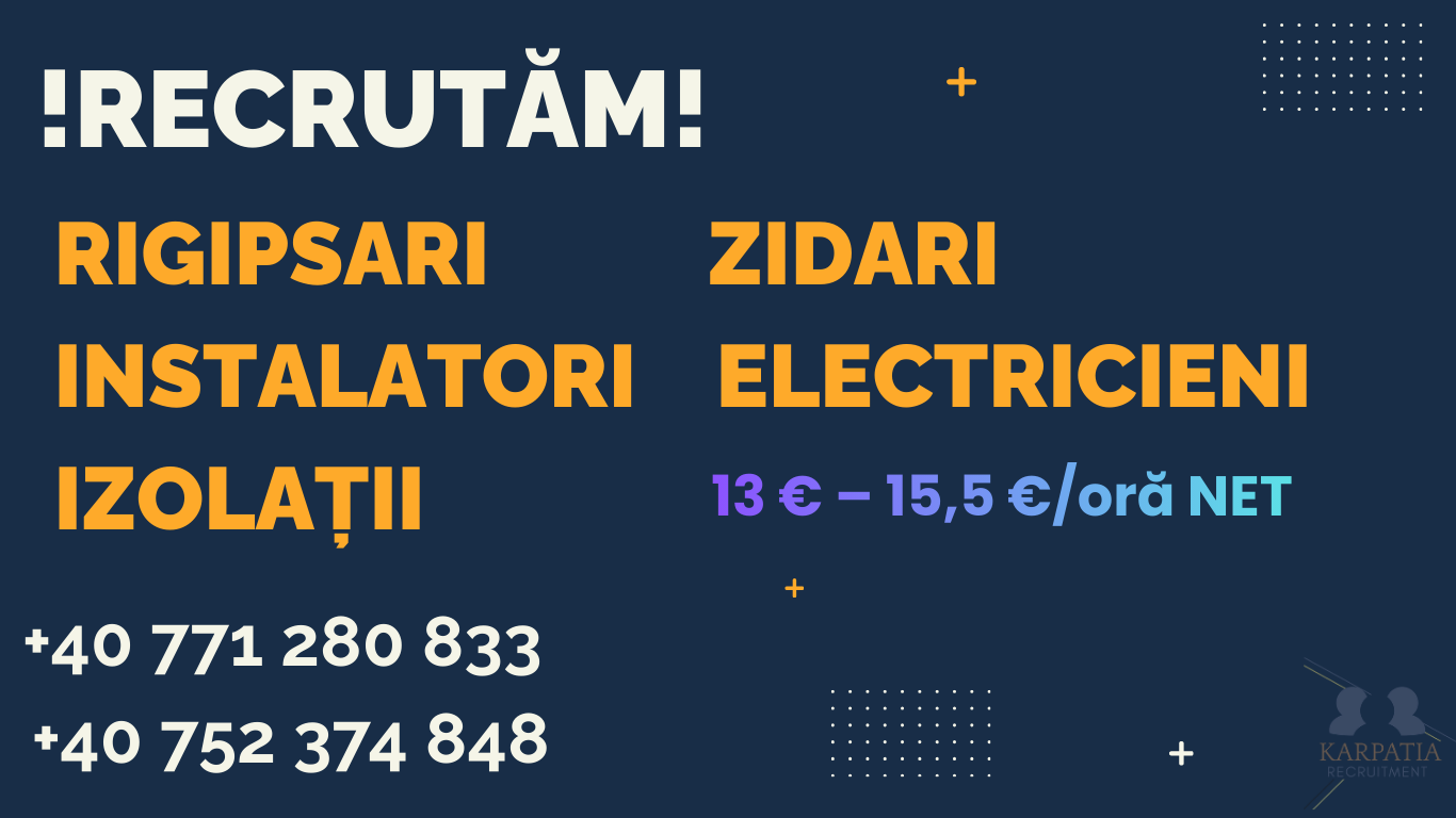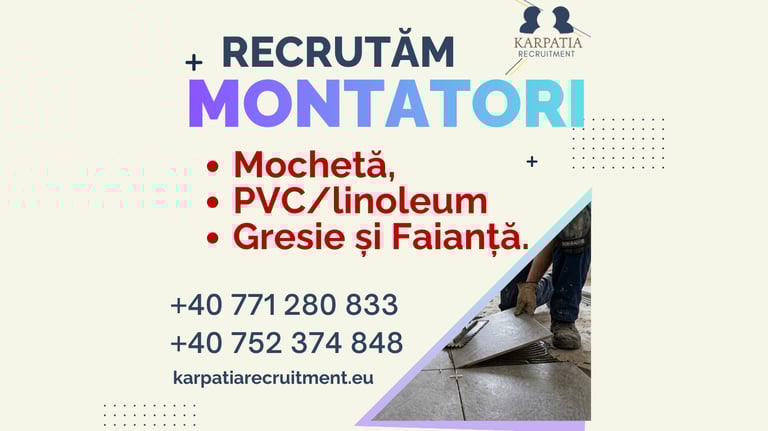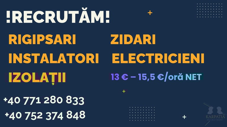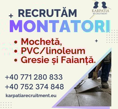 Suntem o agenție de recrutare românească care conectează meseriași calificați cu companii de încredere din toată Europa. Activăm în diverse industrii, asigurând plasamente legale, sigure și eficiente. Ne concentrăm pe o comunicare clară, recrutare etică și respectarea completă a GDPR susținând atât candidații, cât și agențiile partenere în fiecare etapă a procesului.